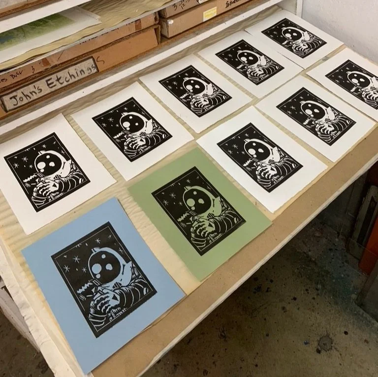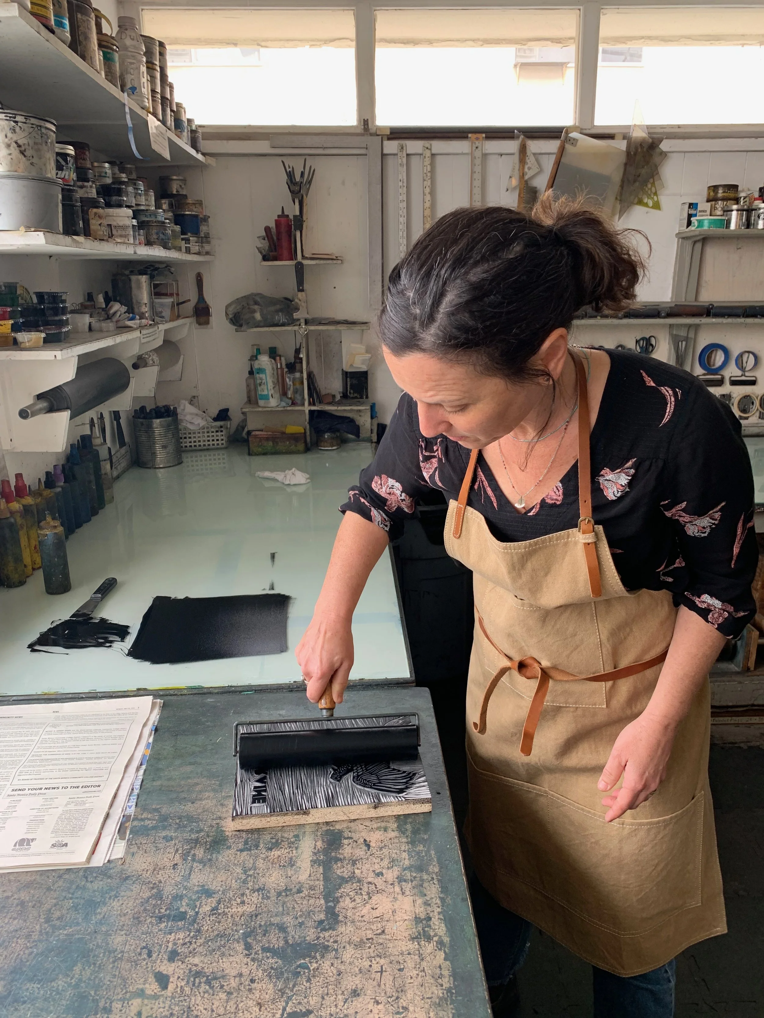 This one day workshop will cover relief carving and printing using linoleum and hand carving techniques. A design is cut into the linoleum surface with varying gouges, with the raised (uncarved) areas representing a reversal (mirror image) of the parts to show printed. The linoleum block is inked with a brayer, and then impressed onto paper or fabric. The actual printing can be done by hand or with a printing press. Participants will hand carve a linoleum block and create a small edition of prints. Blocks sized up to 8 x 10” will be provided. Workshop taught by May Roded.
